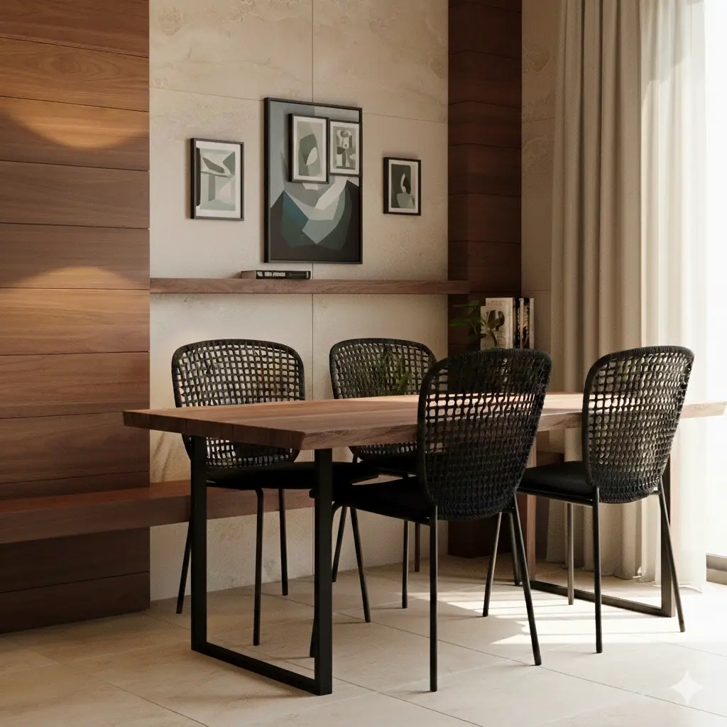 כסא מעוצב בשיא הסטייל – משענת שזורה בחבלים בעבודת יד, הנותנת מראה מאוורר וקליל מאוד. מושב מרופד בגוון החבל ורגליים ברזל שחור מעוגלות ושיקיות. מגיע ב2 צבעים לבחירה: גוון חום עם מושב מרופד בבד אריג בגוון החבל. וגוון שחור עם מושב מרופד בבד קטיפה בגוון שחור. מתאים לכל סגנון של פינת אוכל.