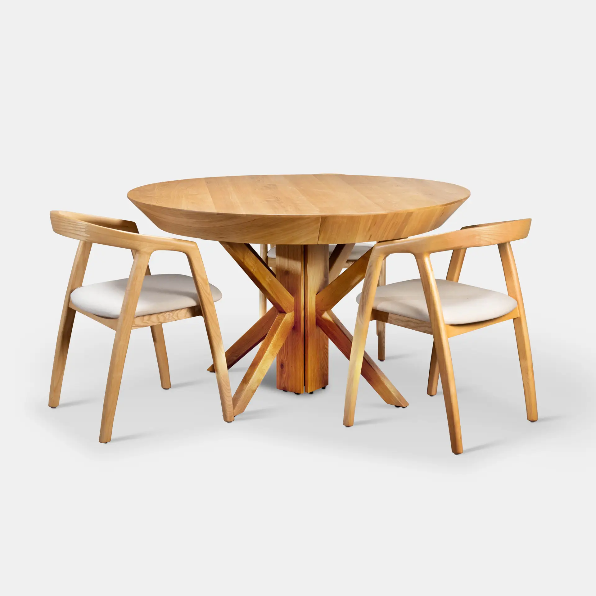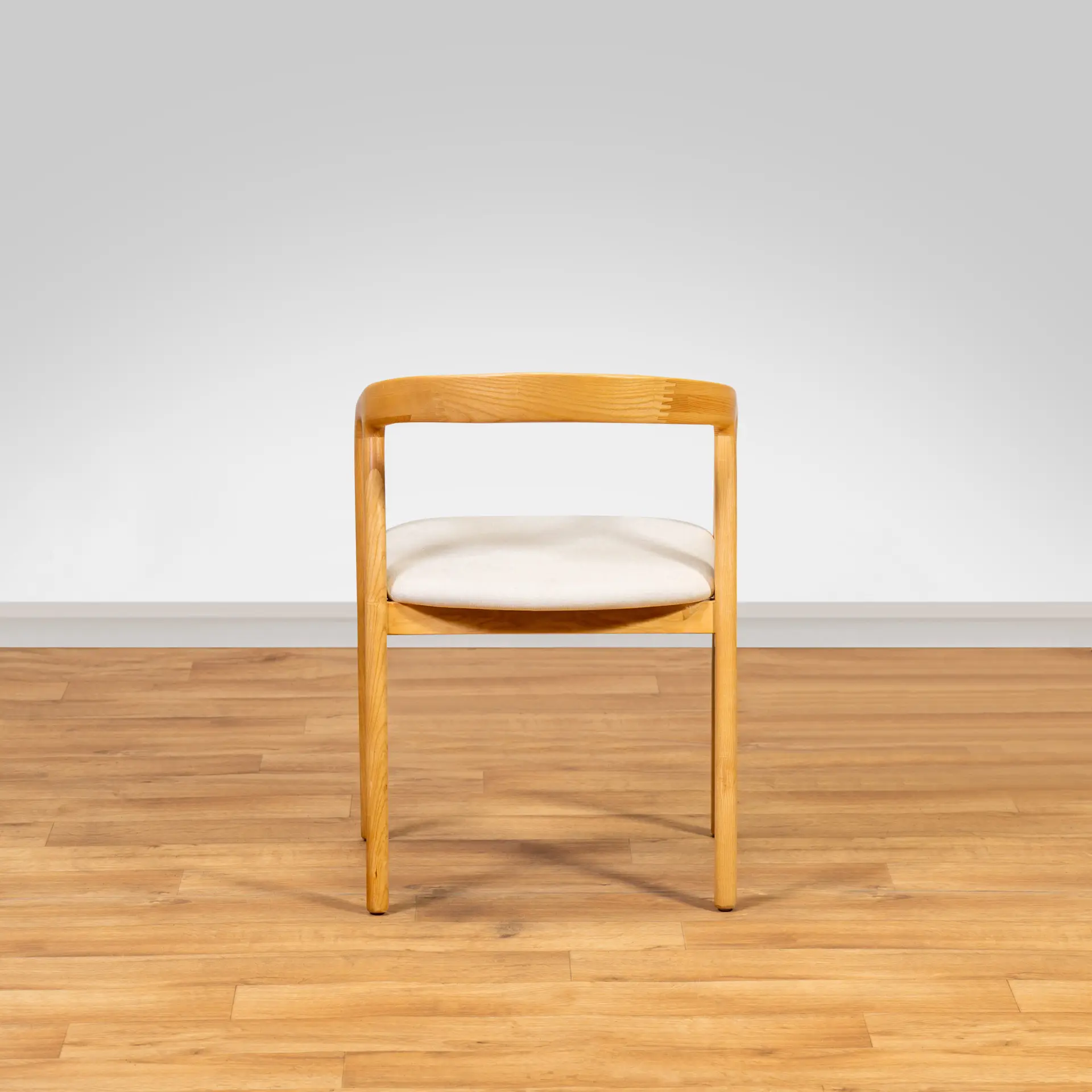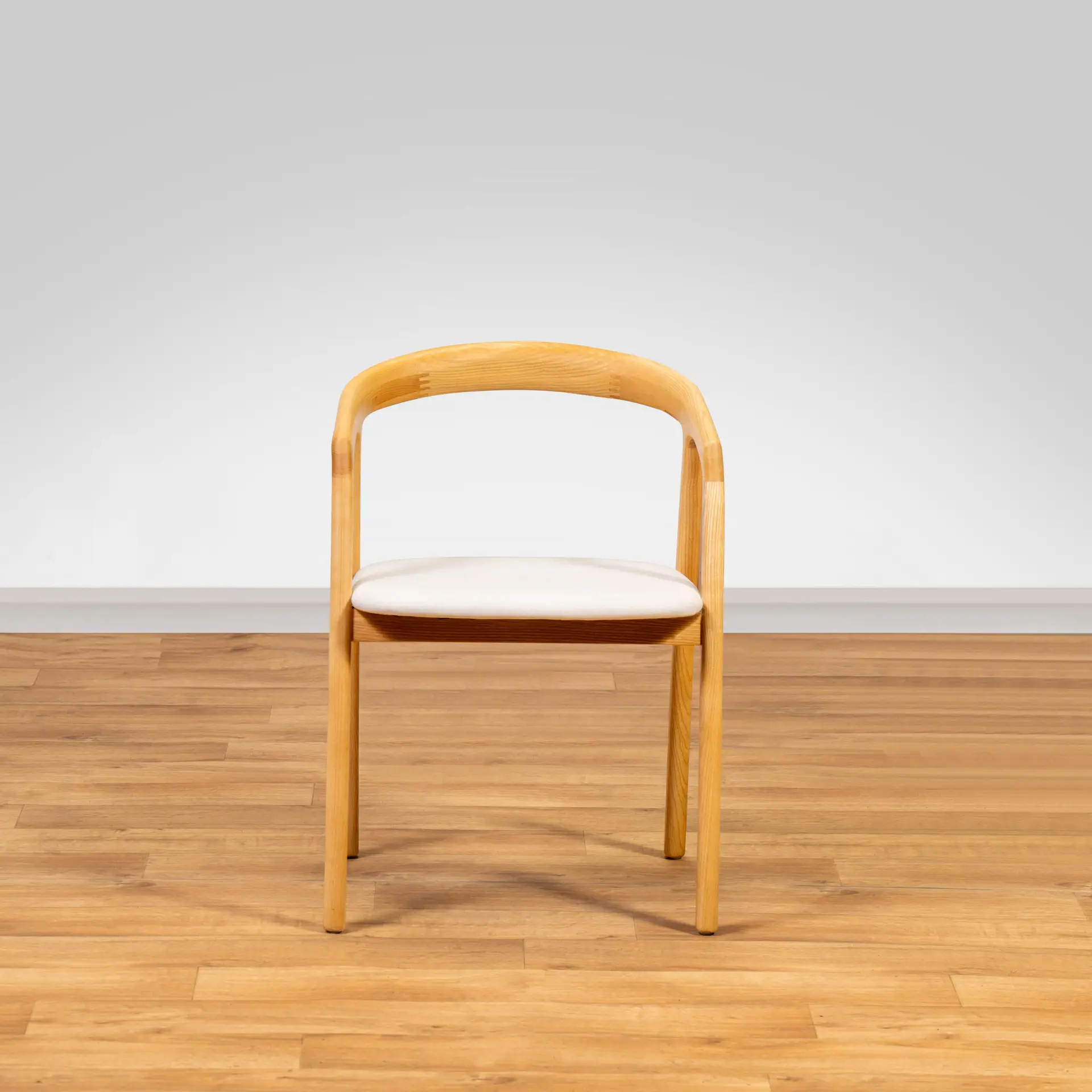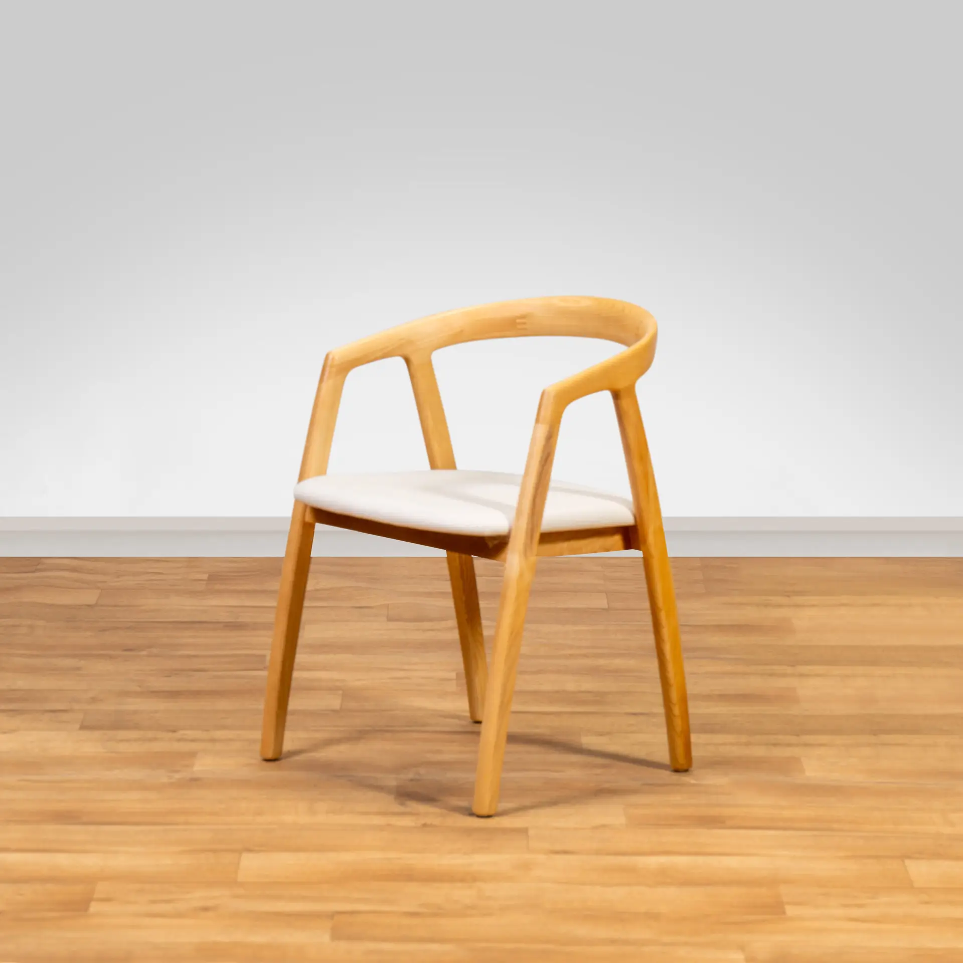 כיסא בוהו עם מושב מרופד בגוון בז', נוח במיוחד עשוי עץ מלא בצבע אלון טבעי, למראה טבעי ושיקי. פיס מושלם לכל חלל ומשלים אותו בצורה קלאסית ויוקרתית.