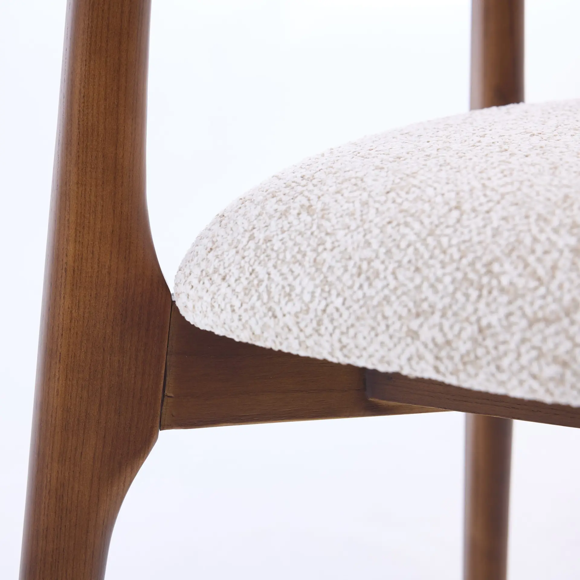 כיסא מדגם מור הוא שילוב מושלם בין עיצוב סקנדינבי נקי ונוחות מושלמת. מבנה הכיסא עשוי עץ מלא בגוון אגוז אמריקאי, ומשלים אותו ריפוד בגוון אבן רך ופלאפי. הקימור האורגני של משענת הגב מעניק לו מראה אלגנטי המתאים לפינת אוכל, משרד או פינת עבודה. המושב המרופד מספק תמיכה מלאה לישיבה ארוכה.