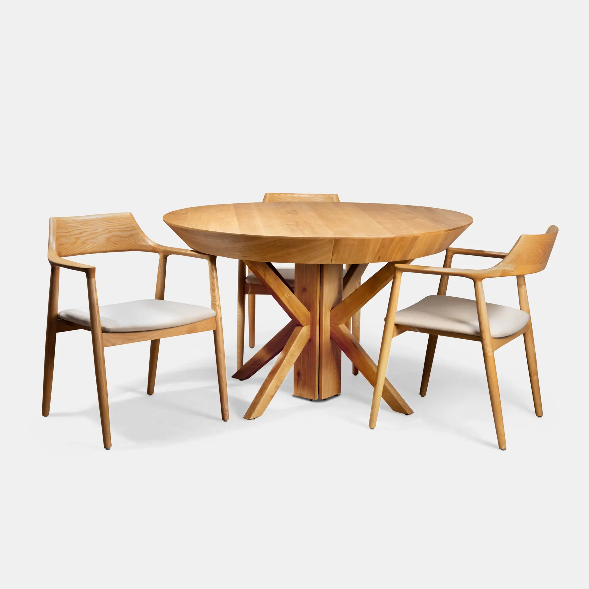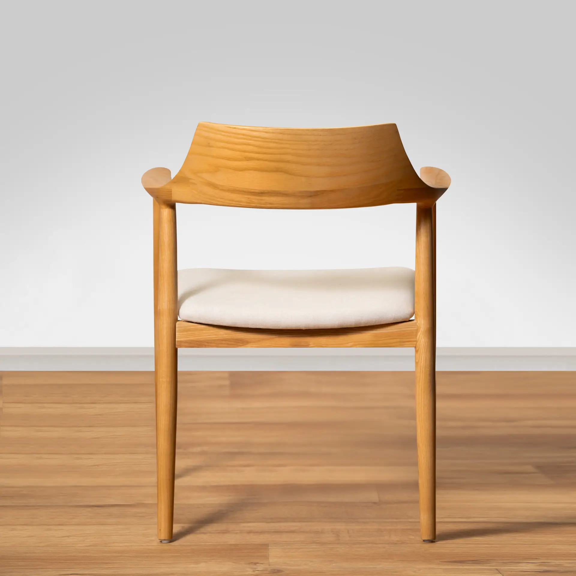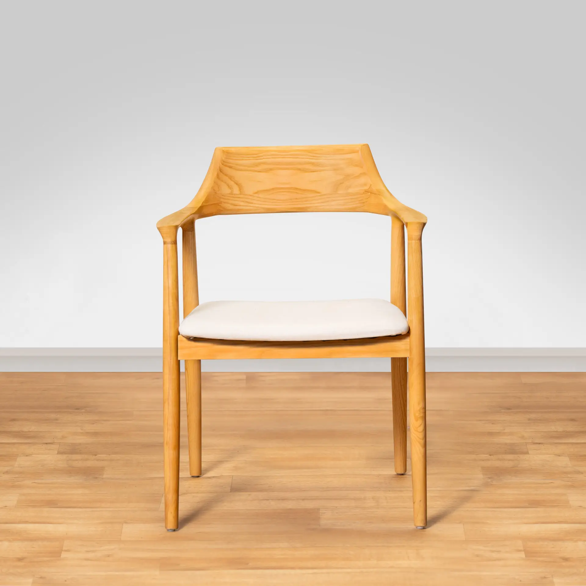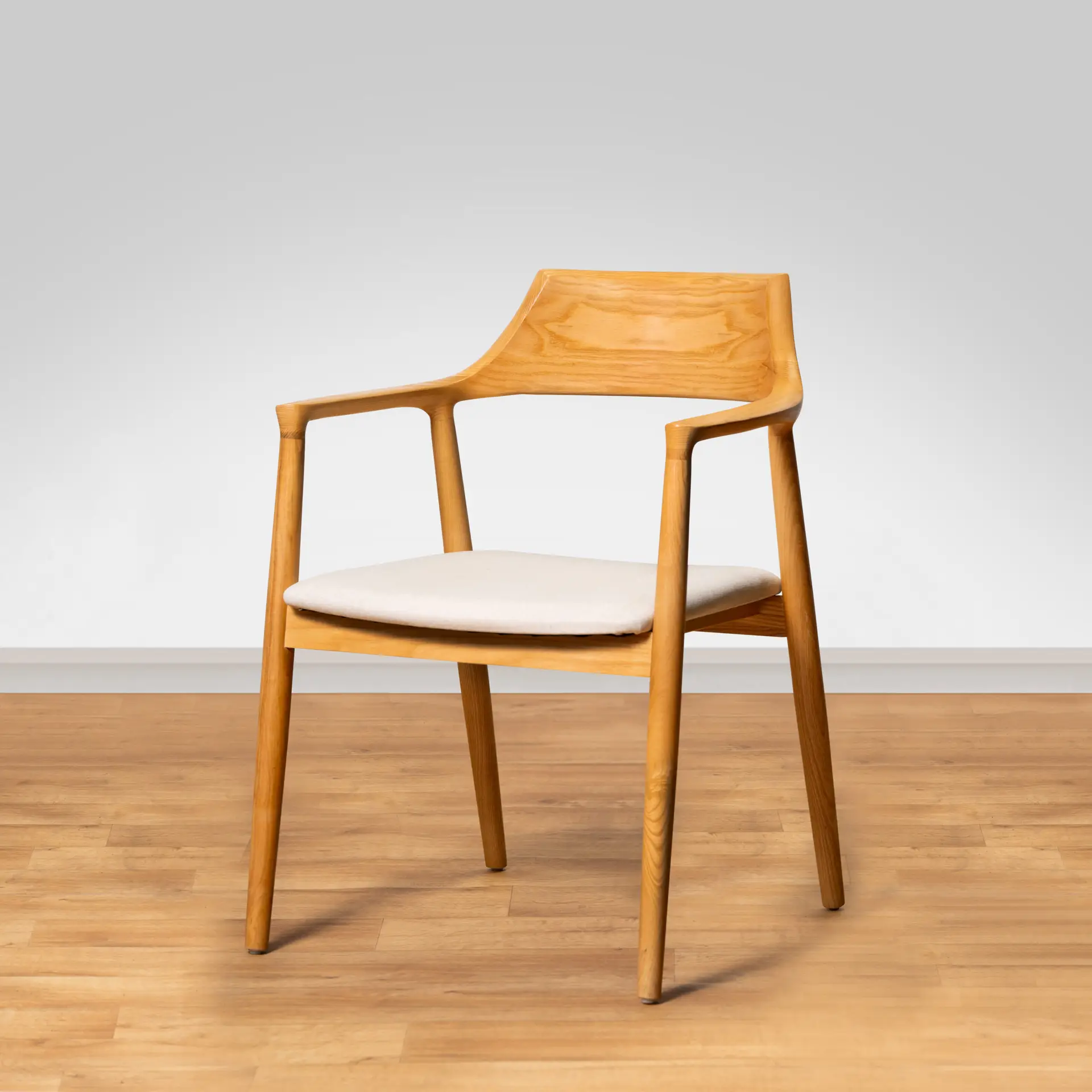 כיסא כפרי עם מושב מרופד בגוון בז', נוח במיוחד עשוי עץ מלא בצבע אלון טבעי, למראה טבעי ושיקי. פיס מושלם לכל חלל ומשלים אותו בצורה קלאסית ויוקרתית.