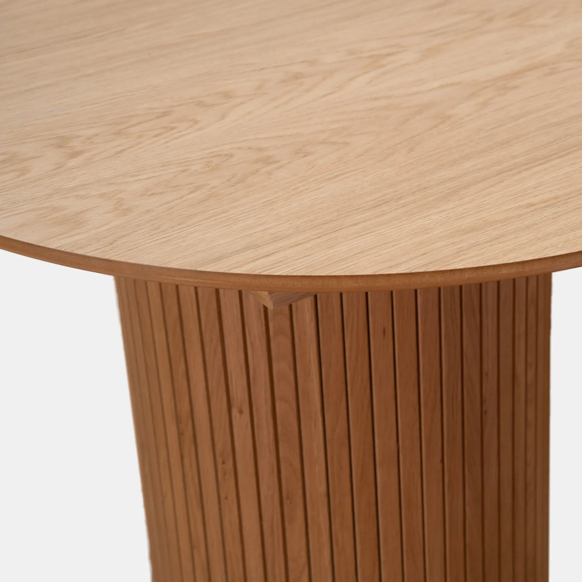 שולחן פינת אוכל אובלי בעיצוב מדויק בסגנון סקנדינבי, עשוי בעבודת נגרות אישית מעץ תעשייתי, בחיפוי פורניר אלון מבוקע. שולחן שובר שיגרה ומוסכמות שישאיר כל אורח בפה פעור.