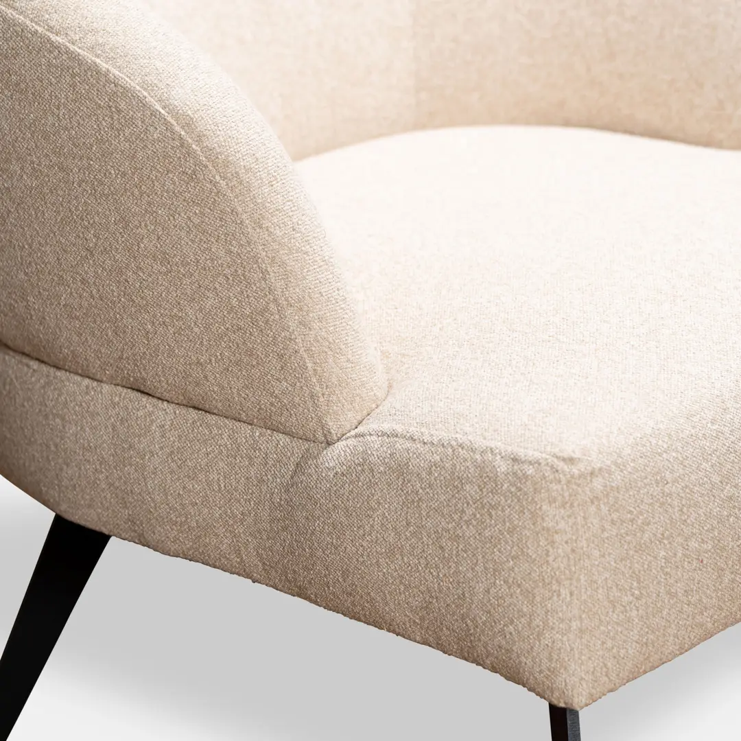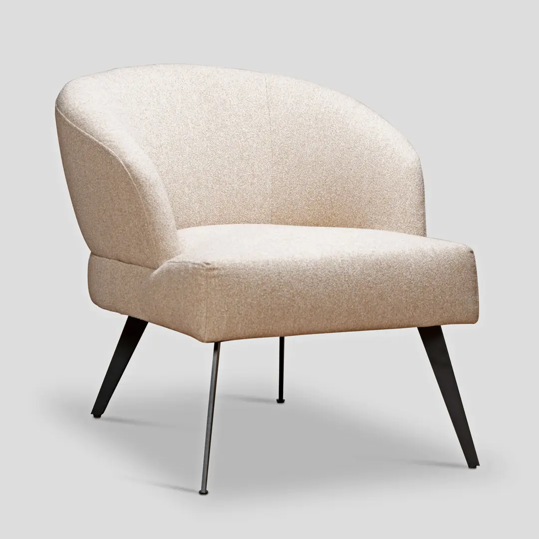 לפחות! כמו שהיא סטייללל, ככה היא נוחה! כורסא בנויה מעץ מלא מכופף מה שעושה אותה יפה במיוחד לאמצע החלל. מרופדת בבוקלה אלגנטי ויוקרתי בגוון בז' (דוחה נוזלים!). להשלמת המראה רגלי עכביש ממתכת אל חלד, רק תחכי שזה יהיה בביתת… ואו