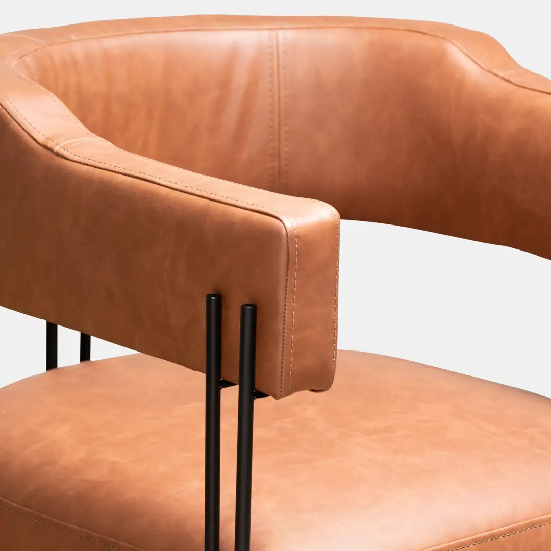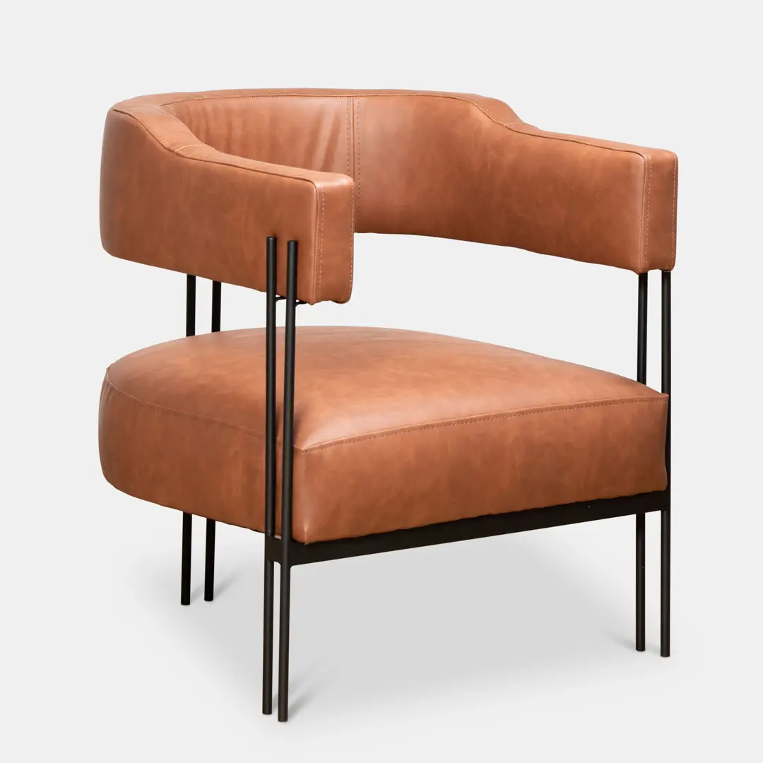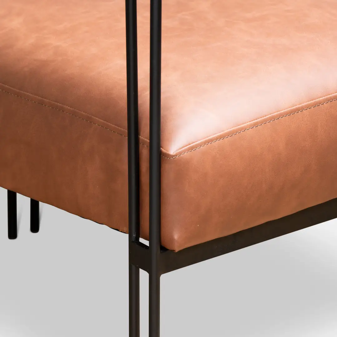 את הפיס הזה לא תירצי לפספס ואורחת שתיכנס אלייך לא תצליח לפספס, כורסא מרופדת דמוי עור חזק במיוחד בגוון כאמל חום. עיצוב אורבני, מדויק וקליל שמתאים גם לחללים קטנים.