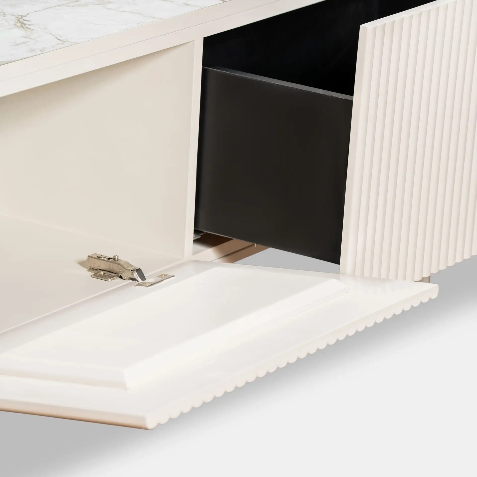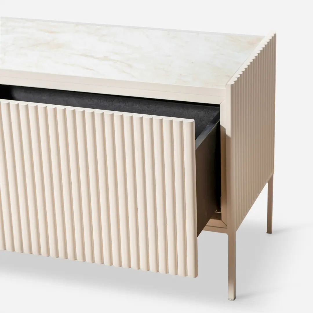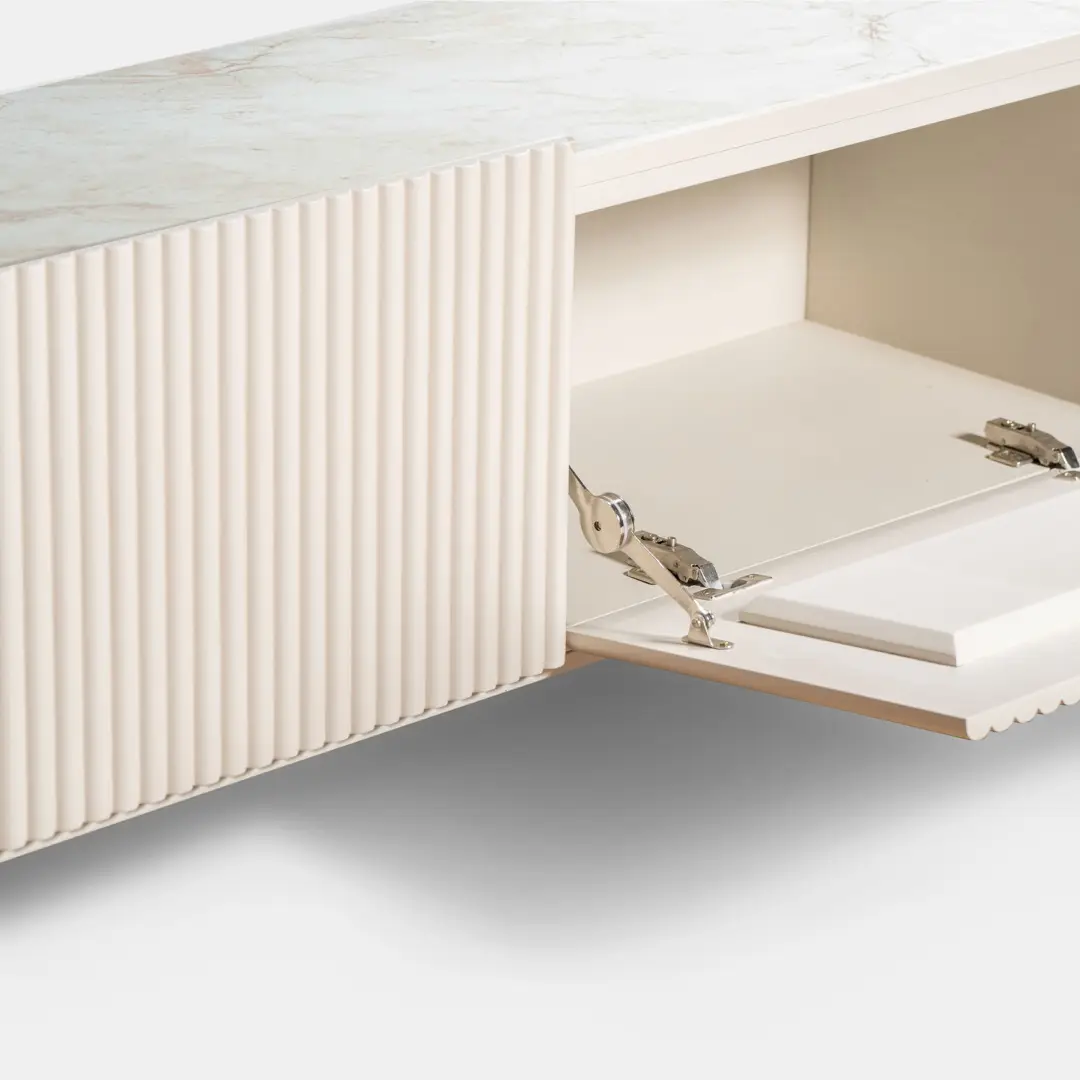 כמה שהפיס הזה מרשים.. ללקק את האצבעות! כל חזית וצדדי המזנון בחיתוך CNC מעוגל וייחודי. המעניק מראה עשיר ויוקרתי לחלל הסלון. צבוע בתנור בצבע אבן בלעדי לרהיטה, המשרה אווירה נעימה בחלל ולהשלמת המראה, משטח עליון בחיפוי פורמייקה מהממת דמוי שיש. בקיצור… סופר סטייל!