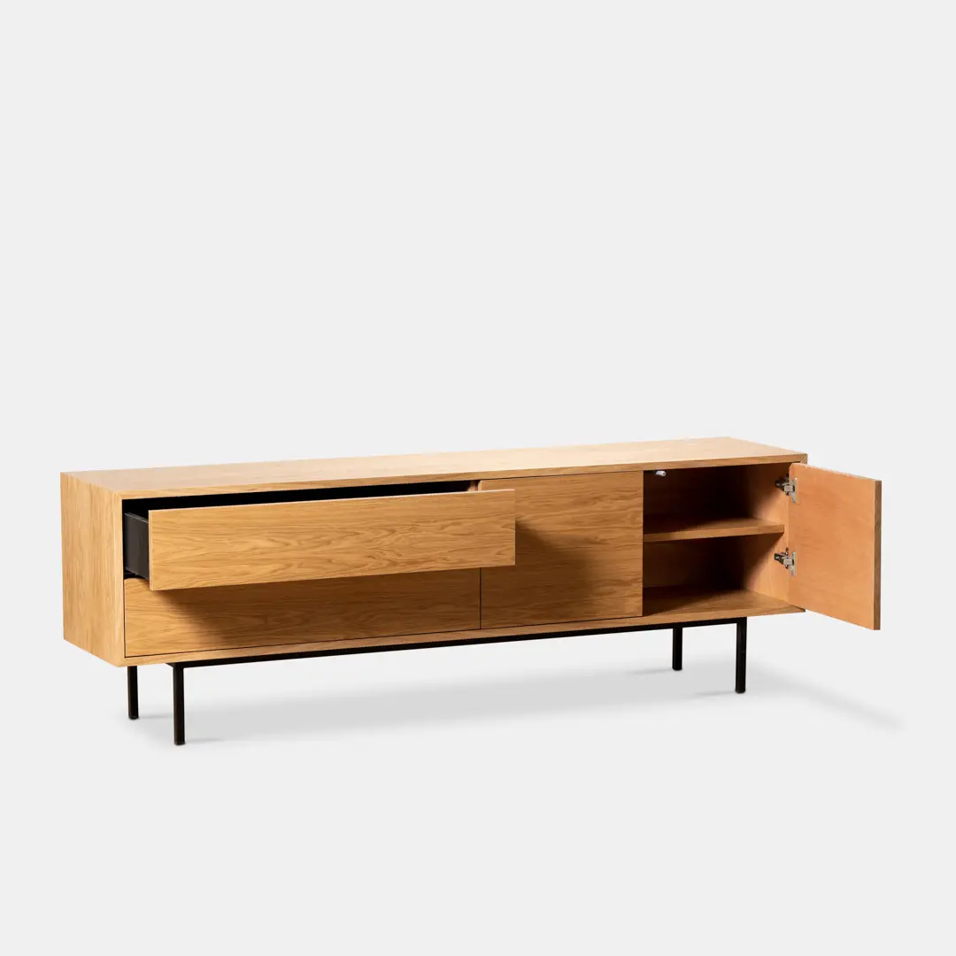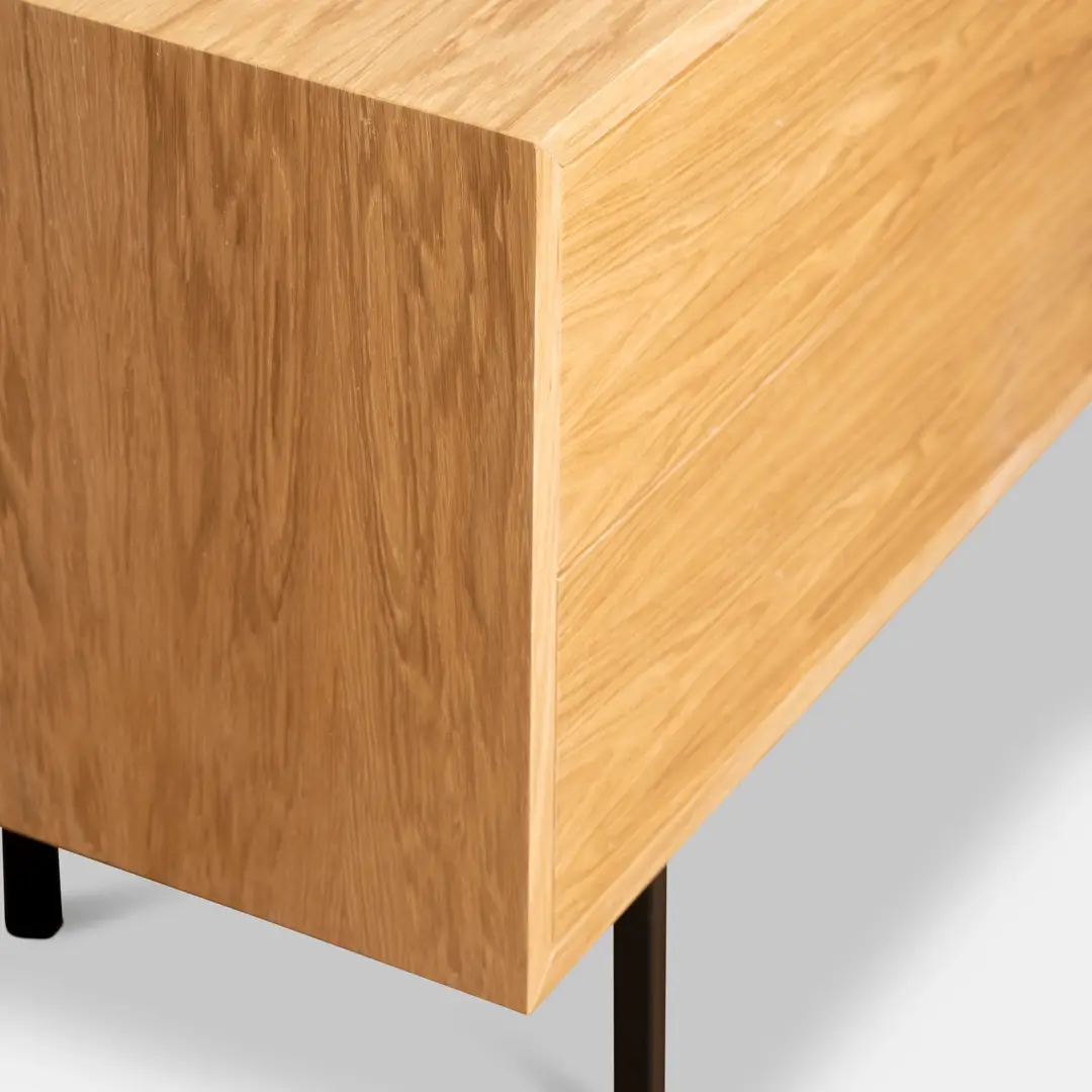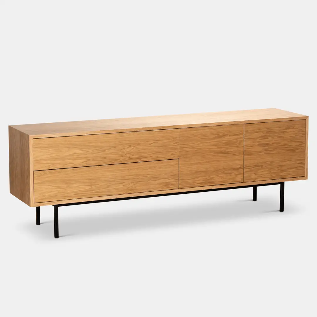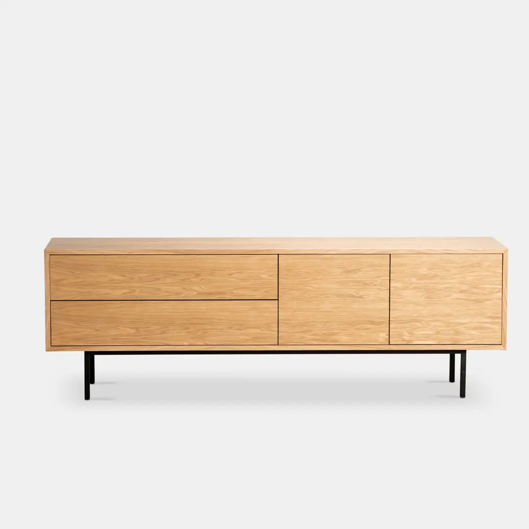 מזנון עץ פשוט ונקי בעל המון יחידות אחסון. 2 דלתות עם מידוף לצד בצד ימין ו2 מגירות עמוקות ורחבות משמאל לניצול מקסימלי של חלל המזנון. כל זה בגוון אלון טבעי על עץ תעשייתי, וציפוי אקריליק 5% להגנה מפני נוזלים ושריטות. כל הטוב הזה יושב על במת ברזל שחור ברמת גימור גבוהה ביותר. לכן קראנו לו סימפל כמה סימפל ככה יפה 😉