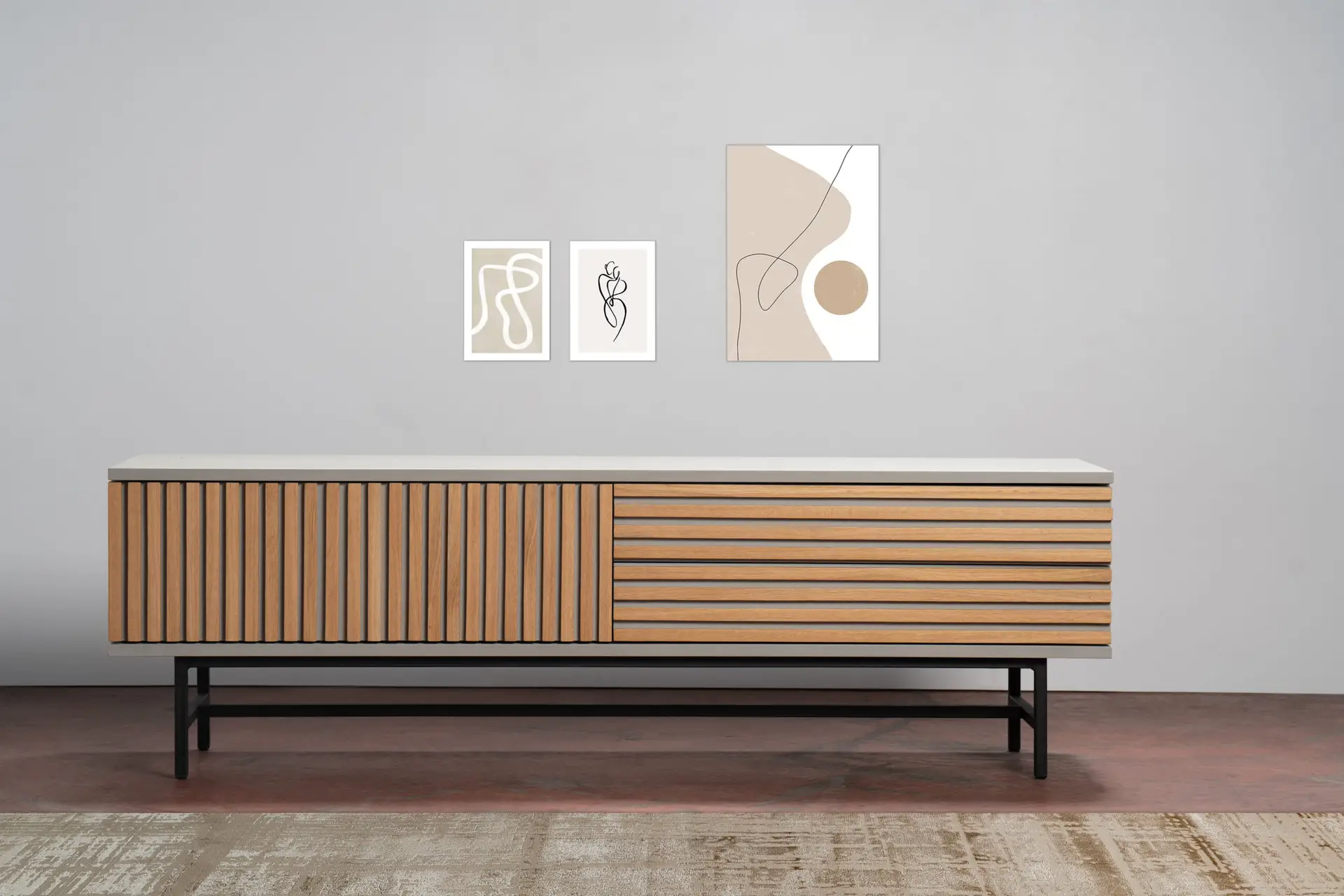 סידור המזנון: חלוקה לשתיים, 2 מגירות רחבות שמאפשרות