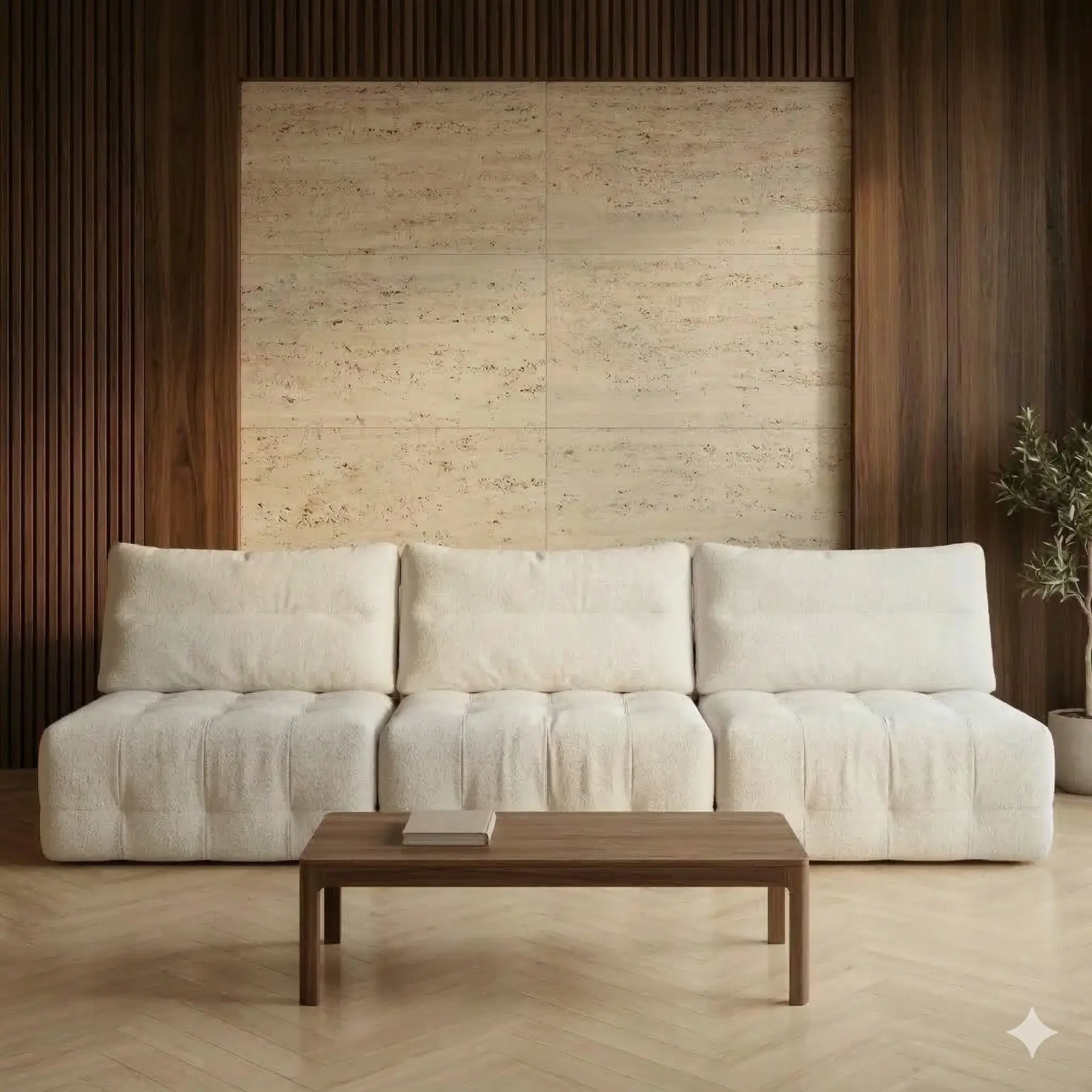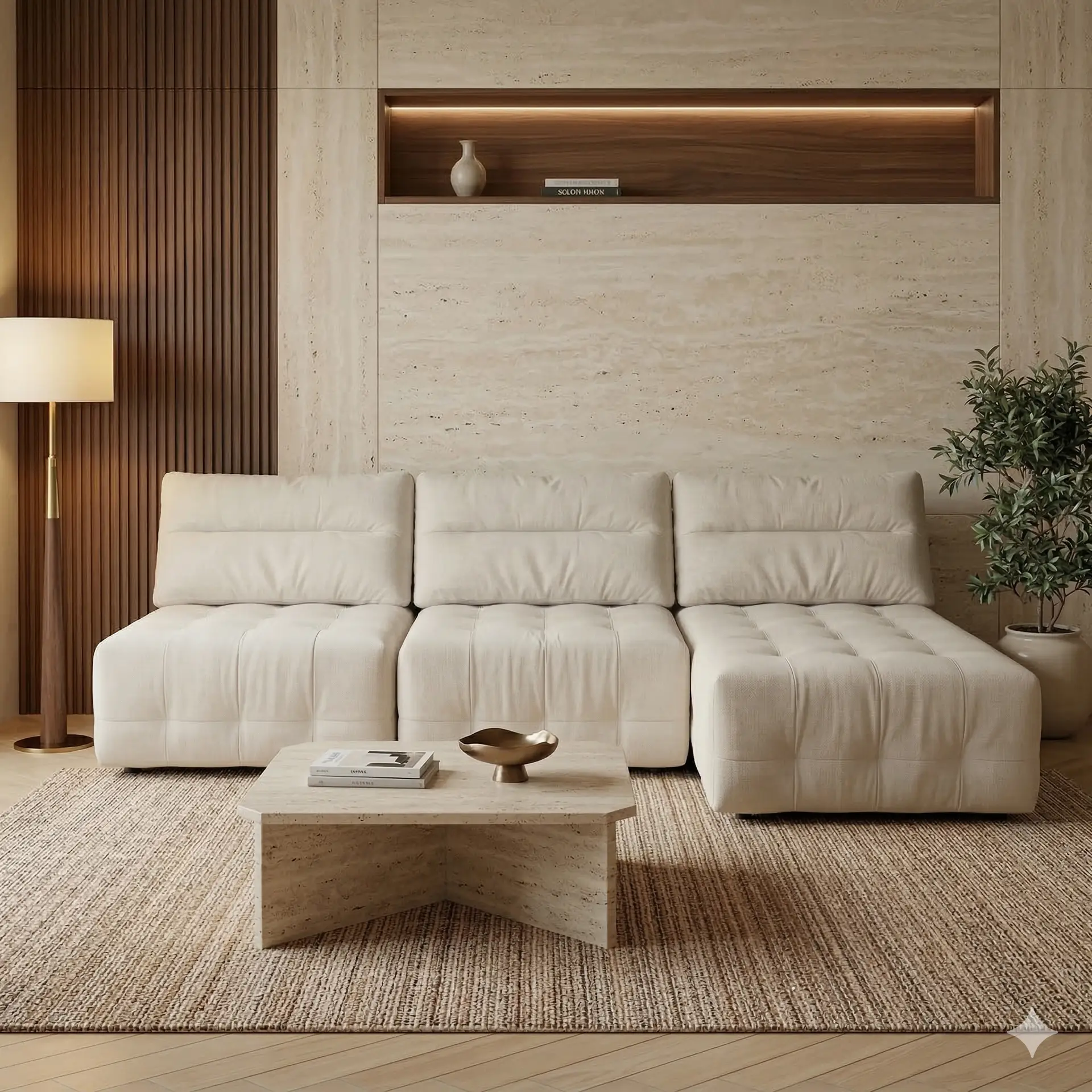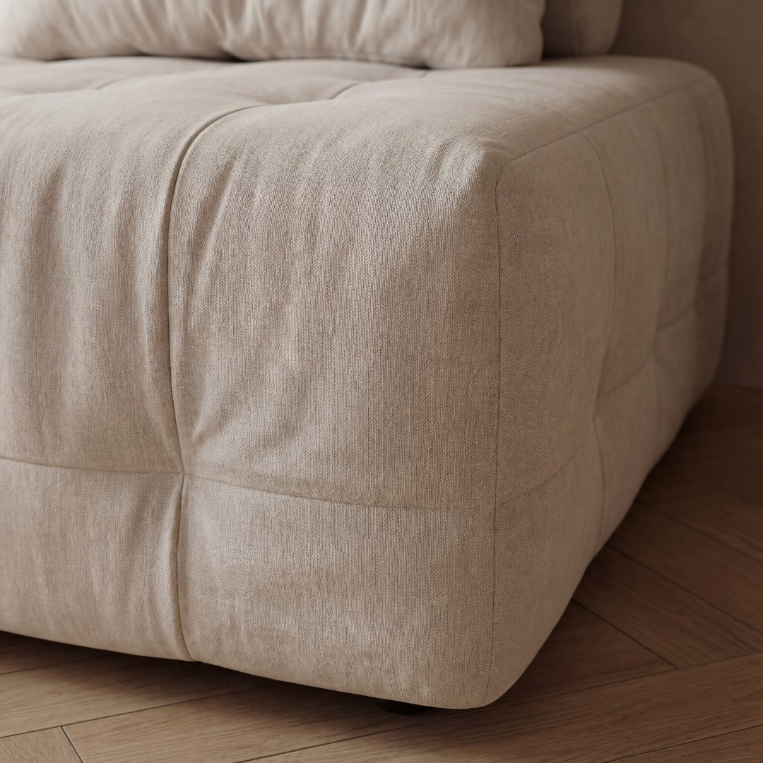 ספה מודולרית מפנקת וצעירה במחיר מטורף, מלאה בסטייל ושיקיות! צבע הבז' הייחודי מבד אריג רחיץ שלה מעניק לחלל הסלון בדיוק את החמימות והמשפחתיות שהוא צריך.. השלמת החמימות נעשית על ידי תפר קפיטונאז' משגע ריפוד מומלץ לבתים עם חיות מחמד.