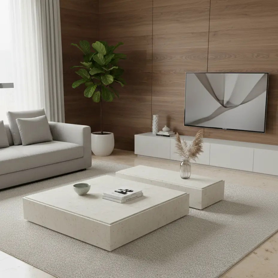 סט שולחנות סלון דקורטייבים בגוון עץ טבעי המשלבים חמימות ומודרניות