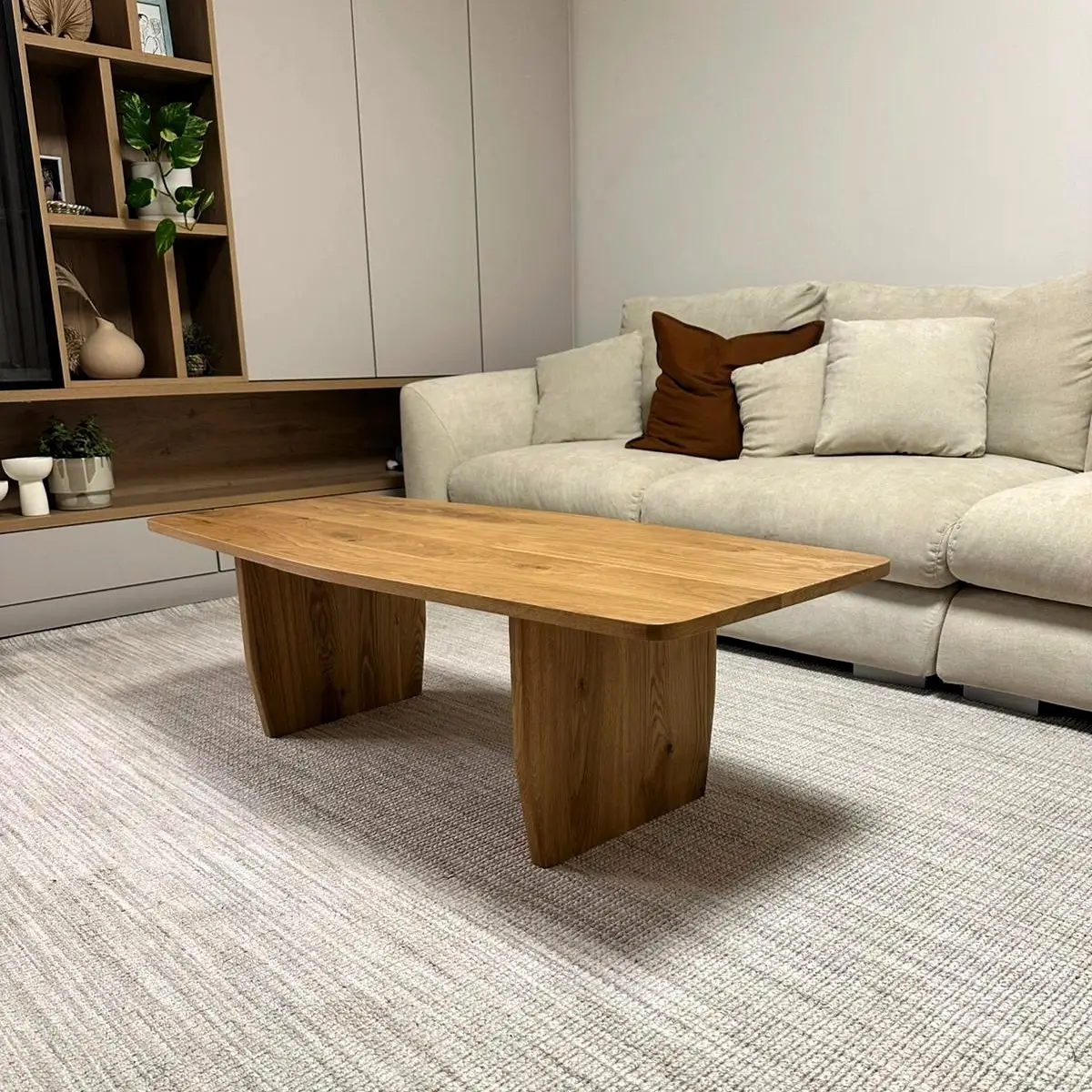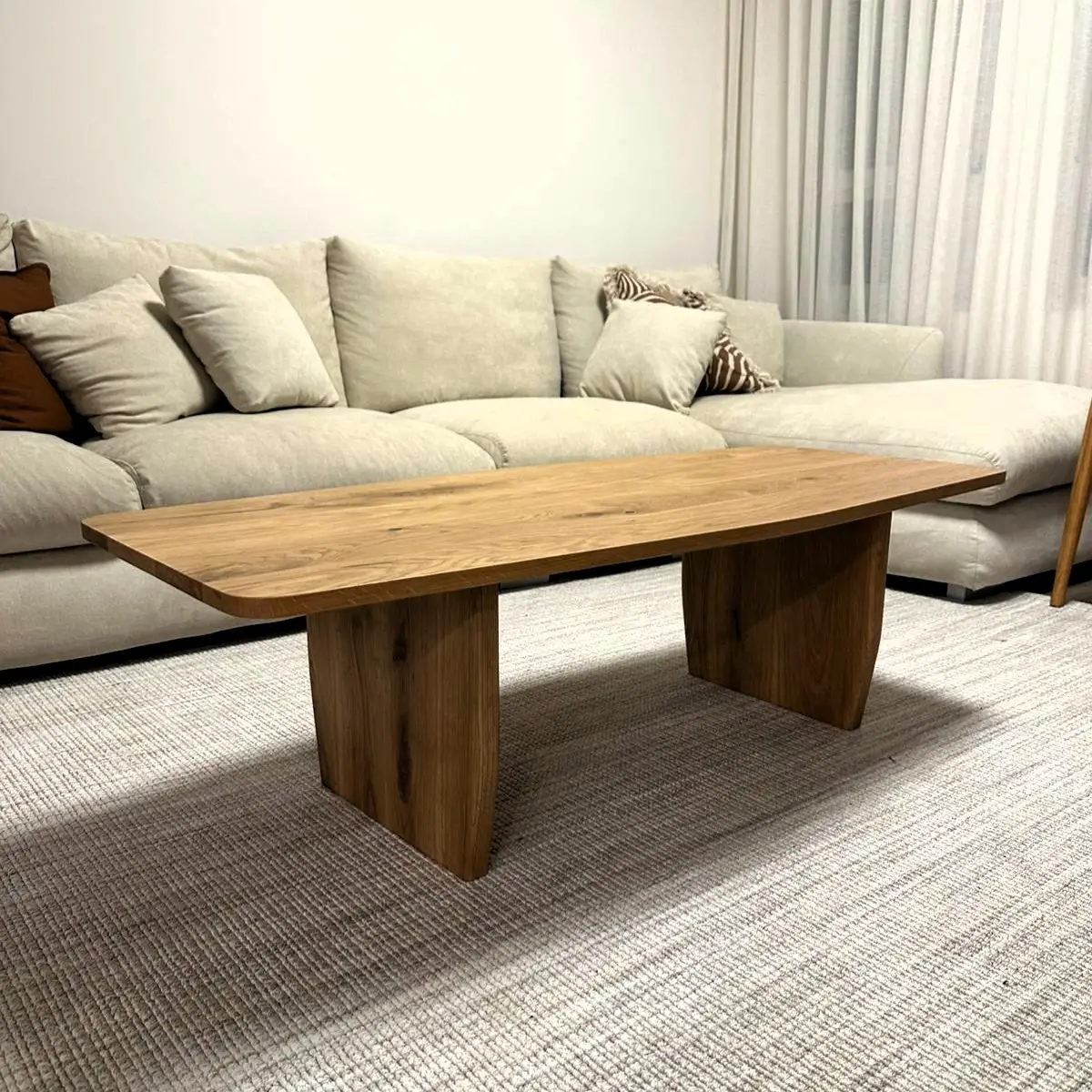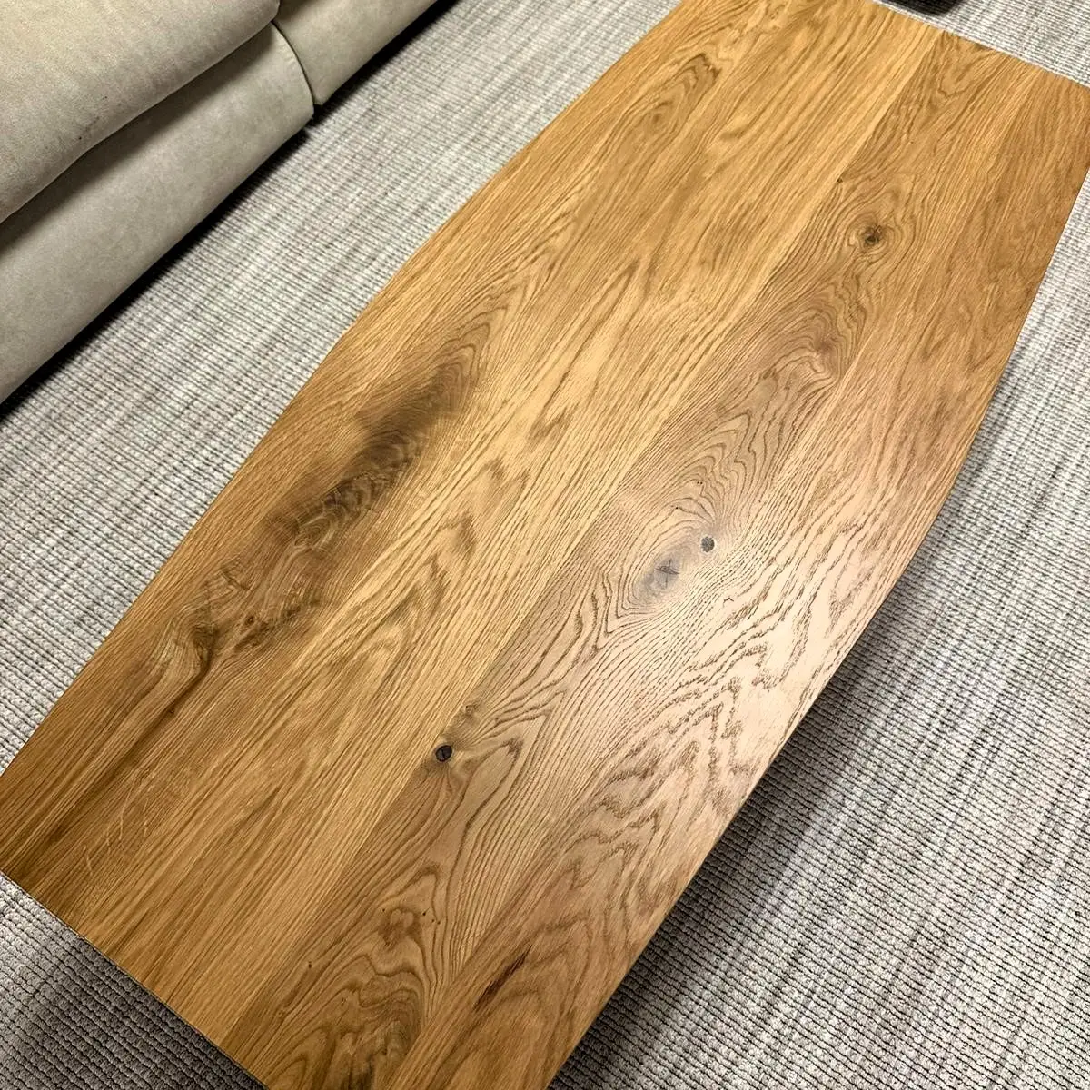 שולחן סלון אסימטרי מעץ אלון מבוקע מלא בעיצוב נורדי משגע, למראה חלל משפחתי ומזמין. אז הגיע הזמן להשוויץ בסלון שלך 😉