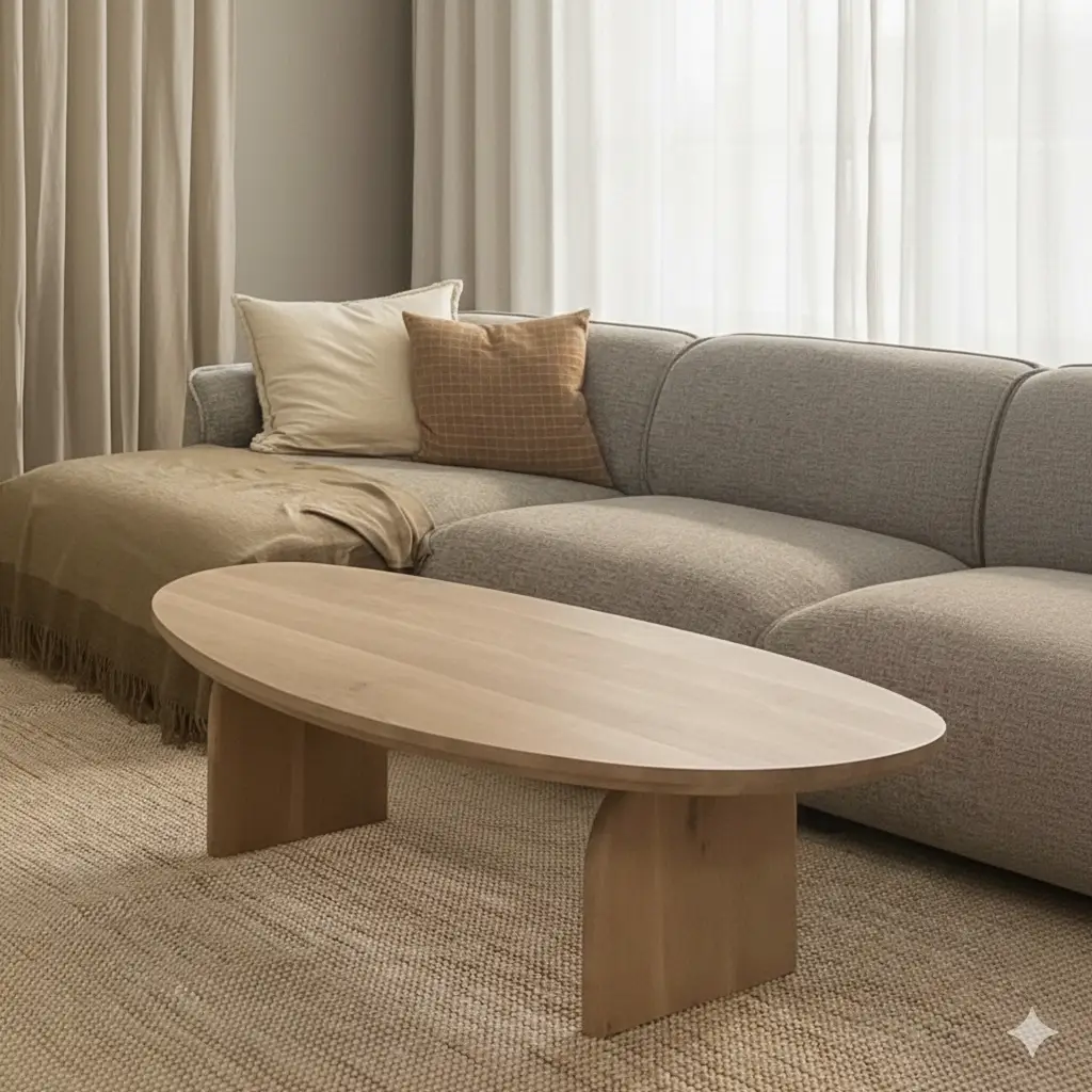 שולחן סלון אסימטרי מעץ אלון מולבן מלא בעיצוב נורדי משגע, למראה אלגנטי ומשפחתי. אז הגיע הזמן להשוויץ בסלון שלך 😉