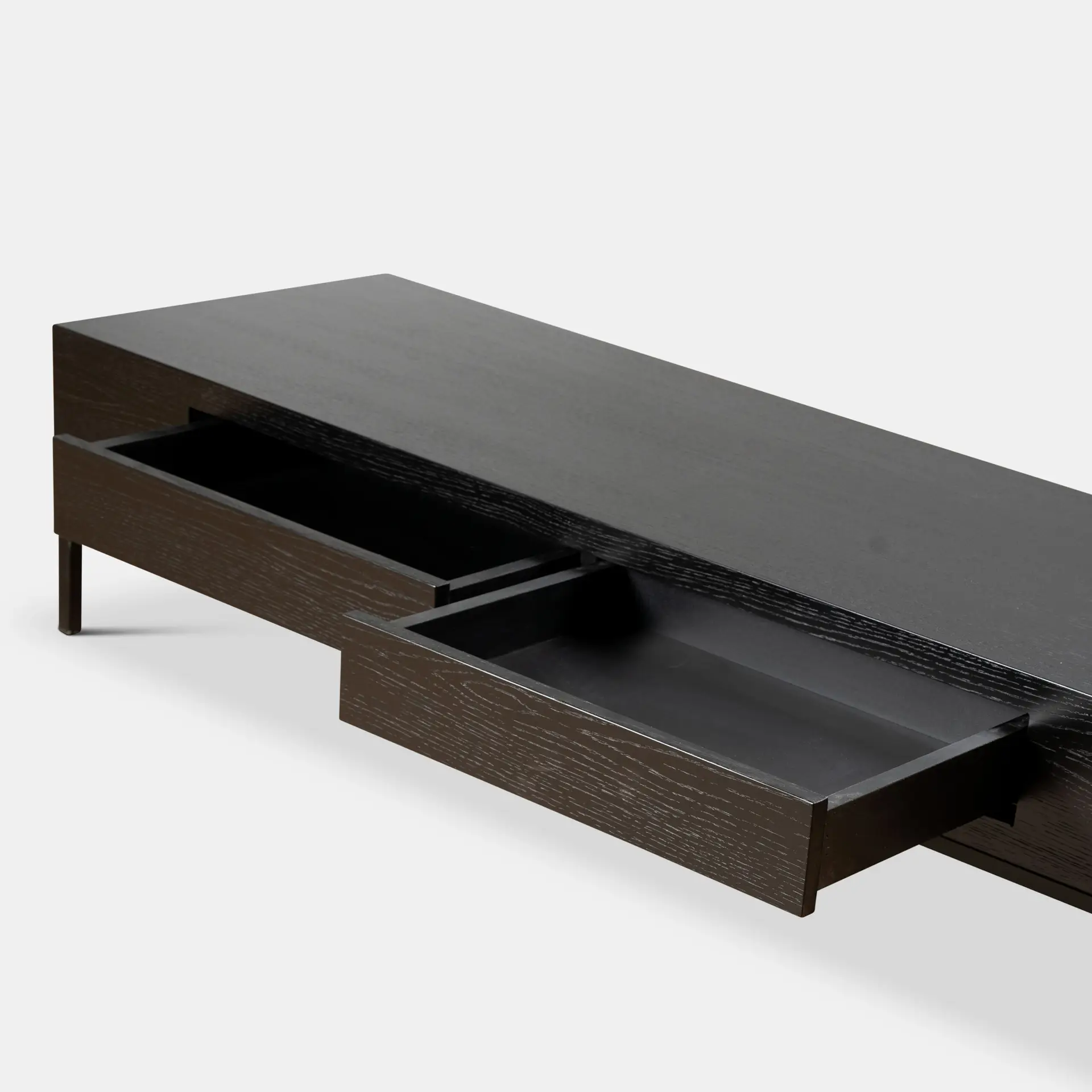 שוויון בנטל האחסון בבית! גם שולחן הסלון מצטרף! גוף בעץ אלון פורניר שחור, יחד עם במת ברזל מודרנית וקלילה. והכי חשוב – 2 מגירות אחסון עמוקות כדי לאחסן כל דבר שלא צריך לראות זרוק 😉